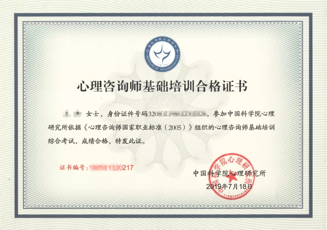 2、综合考试合格,由中国科学院心理研究所颁发《心理咨询师基础培训合格证书》。证书统一编号,心理所网站提供查询。该证书可以作为持证者受过心理学知识和心理咨询技能培训的有效证明,也可以作为持证者开展心理服务的资格参考。